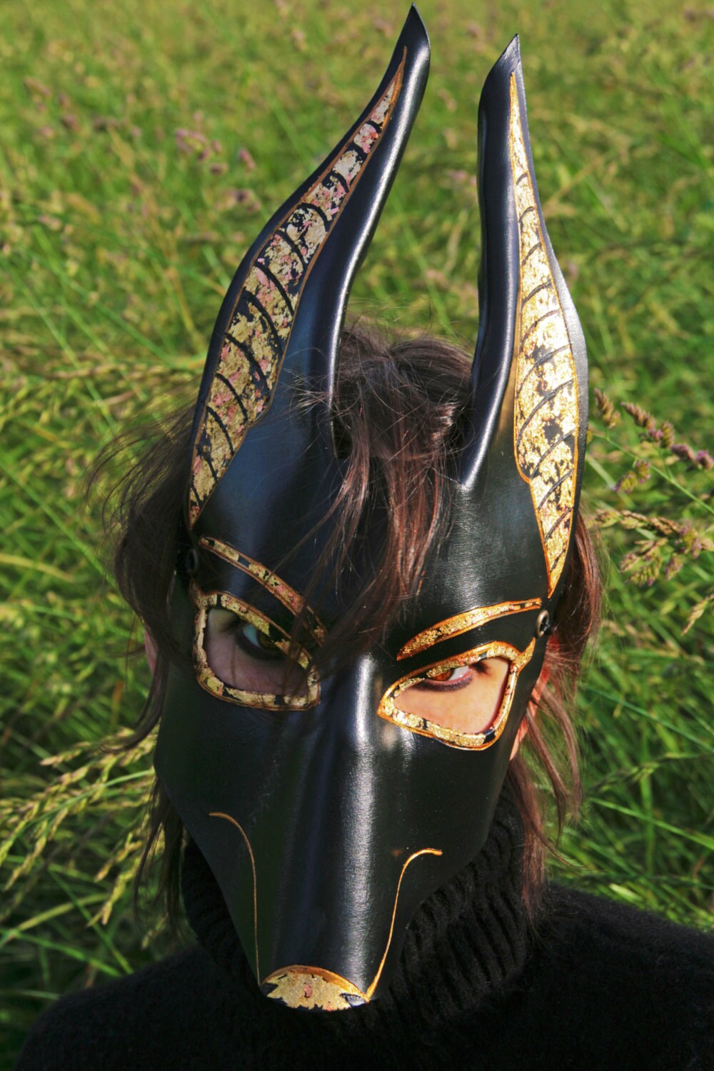 ChimericalDragonfly - MADE TO ORDER - antique anubi egyptian death leather Mask Fantasy Larp Pagan costume wicca mardi gras burning man renaissance fest faire
