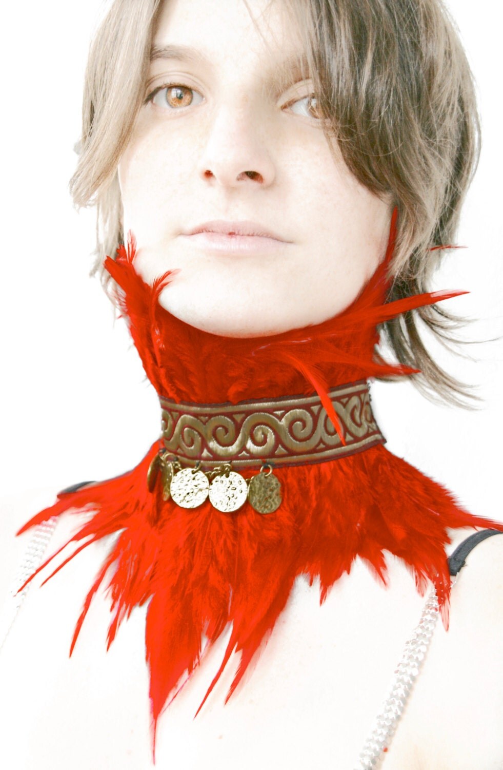 ChimericalDragonfly - READY TO SHIP - choker collar renaissance neck corset victorian steampunk feather red passion love valentine new year eve