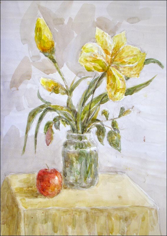 DaryArt - Yellow Flower - Original Watercolor Painting - 13x17,7 inch