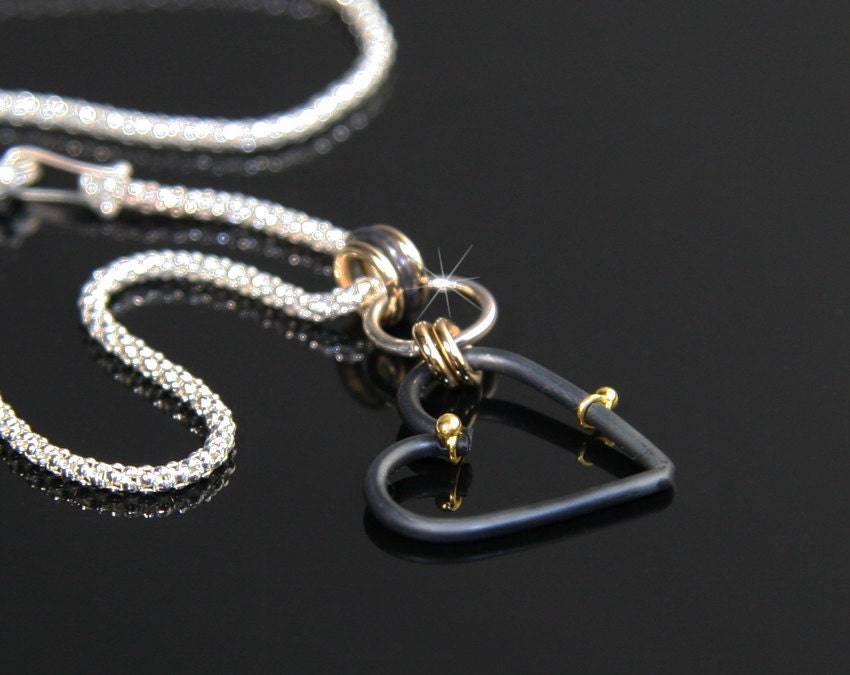 MoonStarsJewelry - Black Steampunk Heart Pendant, Black Valentine Necklace, Steampunk Valentine